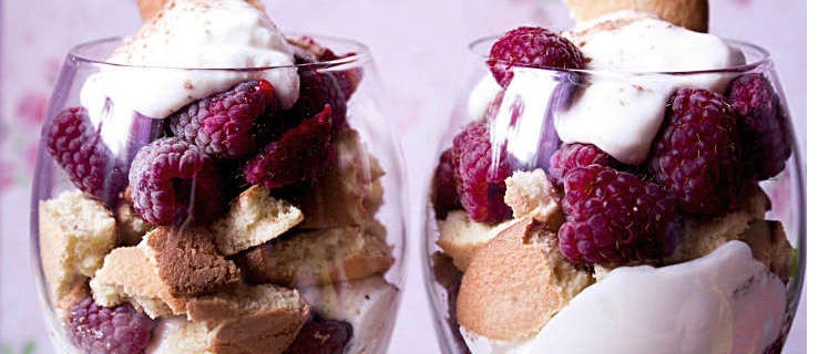 Maliny w kremie z biszkoptami
