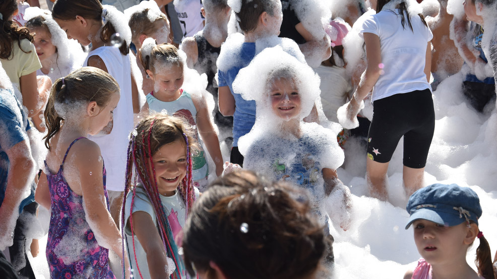 Dzisiejszego upalnego popołudnia w okolicach Szkoły Podstawowej z Oddziałami Integracyjnymi w Piaskach pojawiło się mnóstwo dzieci wraz z rodzicami, by wziąć udział w pierwszym w powiecie „Piana Party”. Podobno podczas prawie dwugodzinnej imprezy wyprodukowano taką ilość białego puchu, jaki mógłby zająć przyczepę TIR- a. Były też kiermasze pysznych ciast (przygotowanych przez Koło Gospodyń Wiejskich ze Smogorzewa), wiśni, książek i zabawek, stoiska z watą cukrowa i popcornem. A nawet pyszna pomidorówka i grochówka, którą można było zabrać do domu w swoich pojemnikach. To już zasługa sympatycznego właściciela Kuchni Wojskowej w Piaskach.