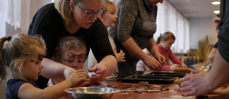 Dzieci w oczekiwaniu na najważniejszego w tym dniu gościa, z pomocą rodziców przygotowywały pierniki. Dzielnie wałkowały ciasto, a po wypieczeniu zajęły się zdobieniem słodkości. W międzyczasie chętnie kolorowały i przygotowywały kartki do Mikołaja. Dla dzieci była też dodatkowa atrakcja - malowanie twarzy. Kolejka byla baaardzo długa, ale każde się doczekało i cieszyło z wzorku.