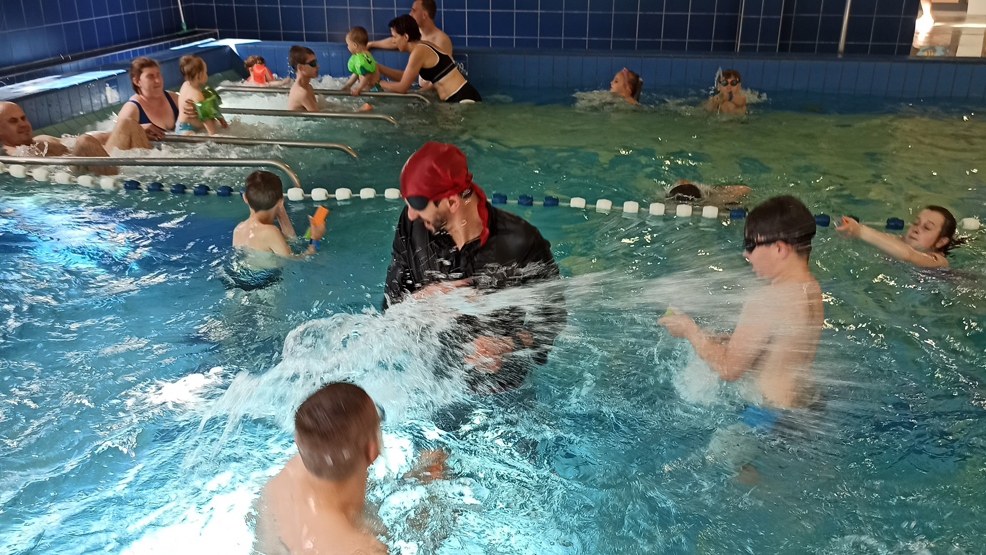 Sporo dzieci bawiło się na zjeżdżalniach, imitujących kadłub pirackiego statku. Przygotowano też zabawy i konkurencje w wodzie, w których bardzo chętnie uczestniczyli także rodzice. Za udział w konkurencjach rozdawano prezenty, ukryte w specjalnej skrzyni ze skarbami. Wśród nioch były słodycze i ... żetony - „talary” z czekolady.