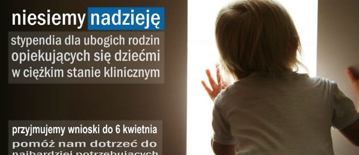 Wnioski o stypendia na lata 2015/2016 przyjmujmowane są do dnia 6.04.2015 roku. Jeśli Twoje dziecko znajduje się w ciężkim stanie klinicznym, wymaga całodobowych specjalistycznych zabiegów opiekuńczych i pielęgnacyjnych, a Twoja rodzina znajduje się w trudnej sytuacji finansowej, jesteś potencjalnym adresatem naszego stypendium. Informacje oraz składanie wniosków na stronie: www.spes.org.pl/stypendia