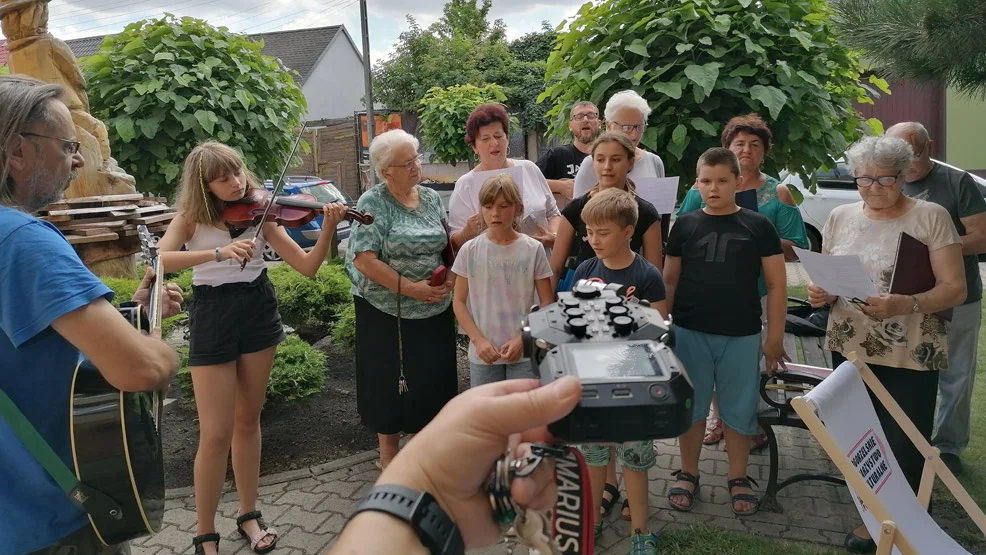 Wczoraj, 2 sierpnia odbyły się pierwsze zajęcia plenerowe, na których seniorzy uczyli swoich piosenek młodsze dzieci, a one z kolei uczyły starszych uczestników projektu swoich ulubionych utworów.