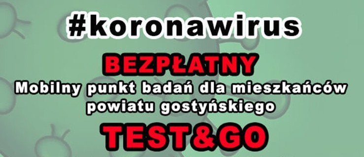 W Gostyniu bezpłatny mobilny punkt badań stanie w czwartek 17 września, na parkingu przy stadionie przy ul. Sportowej. Wymazy będa pobierane od godz. 10.00 do 16.00.