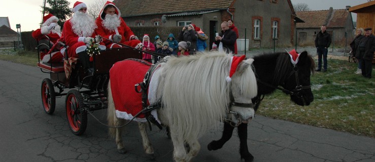 Święty Mikołaj wraz z pomocnikami zajrzał dziś do dzieci z Grodnicy (gm. Borek). Przyjechał bryczką, którą ciągnęły kucyki. Trzynaścioro najmłodszych mieszkańców wioski spotkało się z brodatym gościem w wiejskiej świetlicy. Ubrany w czerwony płaszcz Mikołaj, wysiadając z bryczki, wytargał duży wór. Co tam było? Wyczekiwane przez maluchy prezenty - słodycze, owoce i poduszeczki.
