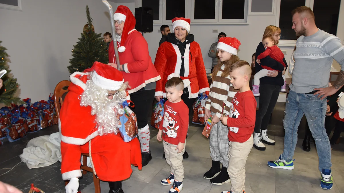 Wyjątkowy gość nie dał długo na siebie czekać w świetlicy wiejskiej. Przy dźwięku dzwonka Święty Mikołaj wszedł ze swoją świtą - Śnieżynkami, Bałwanem i innymi pomocnikami. Usiadł w przygotowanym dla niego fotelu i rozpoczął wydawanie bożonarodzeniowych prezentów. Dzieci, które odbierały paczkę, do koszyka stojącego obok fotela wkładały listy, rysunki lub inne świąteczne gadżety. Był czas na chwilę rozmowy z Mikołajem oraz szybką sesję fotograficzną. Pomocnicy, a szczególnie Śnieżynki również chętnie pozowały do zdjęć.