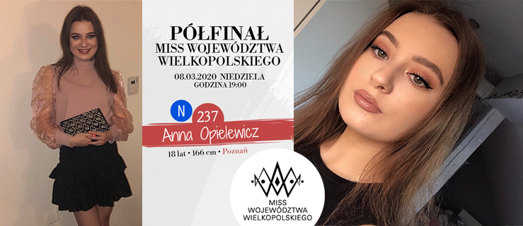 Anna Opielewicz to 18-letnia mieszkanka Dolska. Uczęszcza do poznańskiego liceum, które wybrała ze względu na „większe miasto i renomę szkoły”. Do konkursu piękności zgłosiła się, aby spróbować swoich sił i przełamać bariery, związane ze zdrowiem.