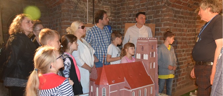 W pomieszczeniu, do którego docierali zwiedzający przygotowano wystawę archiwalnych zdjęć z kościoła farnego, makiet gostyńskich budowli oraz ciekawostki. - Dwa razy byłem na samej górze. Ten kominek jest wyższy ode mnie. On tylko z dołu wydaje się mały - pokazywał na makiecie obiektu Paweł Karolczak szczyt wieży. Wyjaśnił, że żeby przedostać się wyżej, w pewnym momencie kończy się klatka schodowa, więc ostatnie dwa poziomy trzeba pokonać po drabinie. Opowiadał o potężnym strychu, na którym widać sklepienia.