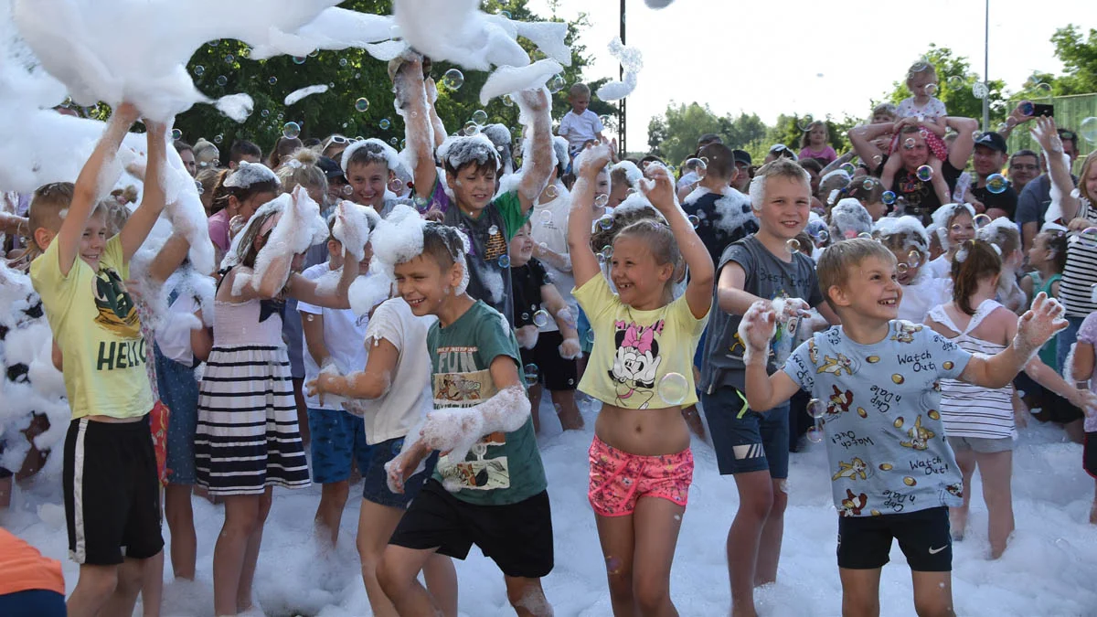 Na zakończenie festynu przygotowano Piana Party, czyli kąpiel w pianie, którą „podano” ze specjalnej maszyny, tzw. wytwornicy. Dzieci bawiły się świetnie, a dorośli patrzyli z zazdrością.