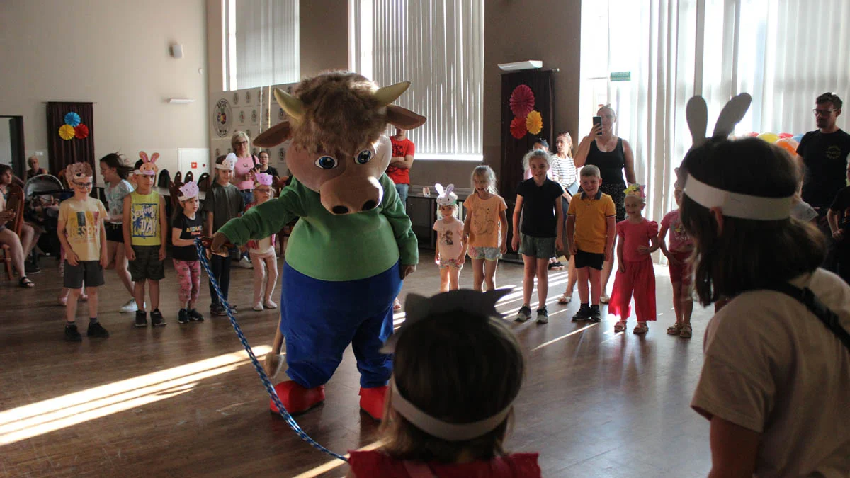 Ośrodek kultury gościł dziś około 70 dzieci. Poczęstowano je goframi, każdy mały świętujący dostał balona. Było gwarno, kolorowo, radośnie, przytulaśnie - dzieci chętnie przytulały się do maskotki szalonej krowy.
