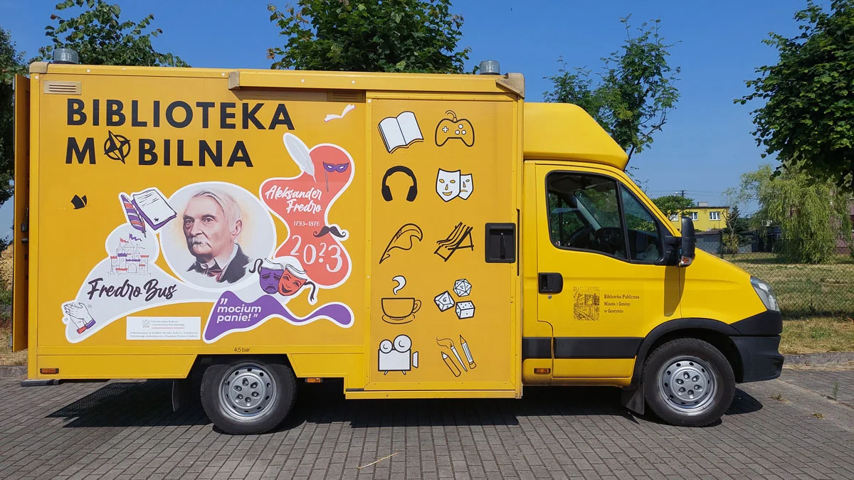 Od początku tegorocznych wakacji można zauważyć, że gostyński bibliobus zmienił się tego lata w FredroBus! 3 lipca 2023 r. ruszył w trasę do 21 wsi, gdzie odbędzie się ponad 50 zajęć tematycznych, łączących książki, teatr i nowoczesne technologie.