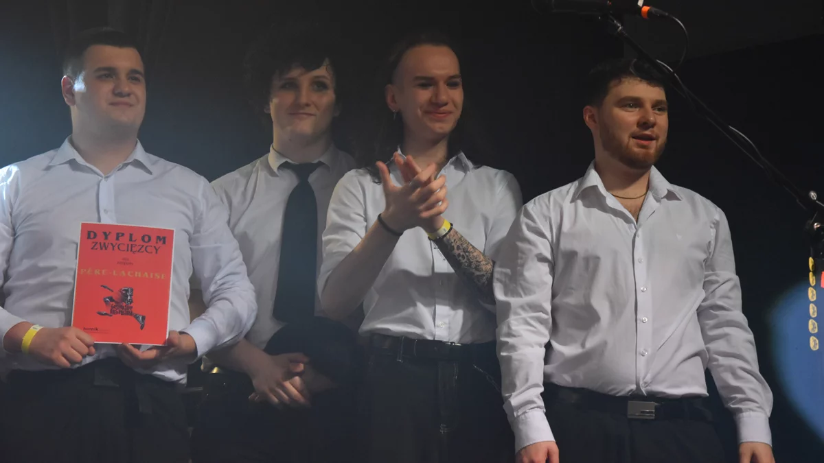 Nagrodę główną w wysokości 5000 zł oraz dyplom zwycięzcy gwarantujący wieczną chwałę otrzymała formacja Père-Lachaise z Gniezna. Zespół powstał dwa lata temu, a tworzą go: wokalista Tim Curtis, gitarzyści Filip Głowski, Oliwier Czajkowski, basista Michał Stefański, perkusista Mikołaj Stopczyński oraz Jakub Grzechowiak - klawisze. Wystąpili w białych koszulach, jakby na przekór stylowi muzyki, który reprezentują.