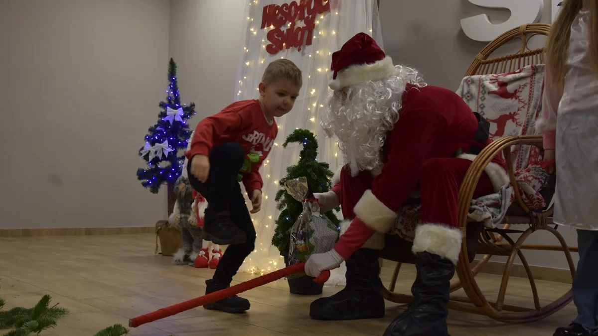 Kiedy św. Mikołaj opuścił świetlicę, przed uczestnikami spotkania pojawiła się animatorka, by umilić czas maluchom, organizując rożnego rodzaju konkurencje i zabawy.