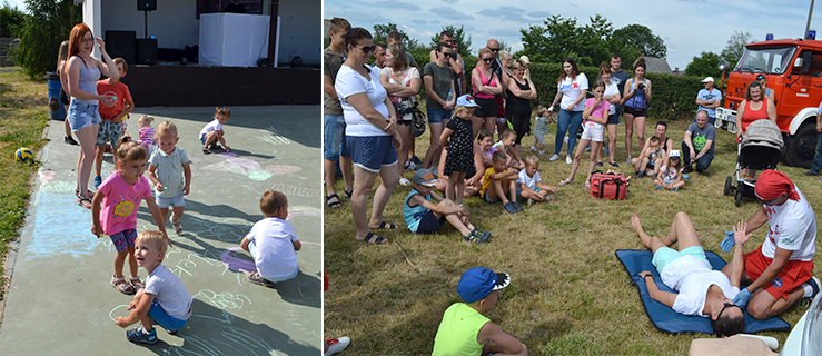 Na boisku strażacy zraszają wodą, ratownicy WOPR uczą, jak udzielać pierwszej pomocy, dzieci ustawiają się w kolejce do malowania twarzy i tworzą na parkiecie malunki, a chętni mieszkańcy korzystają z kawiarenki. Sołtys przyznaje, że organizacja takiej imprezy, nie była sprawą łatwą, ale „poszło całkiem sprawnie”.