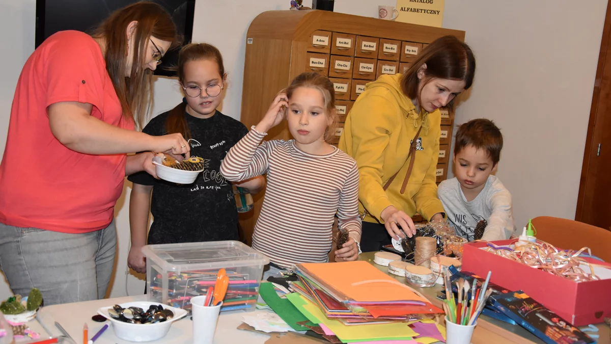 W niedzielę jesienny klimat powitał nas za oknem, ale też w bibliotece publicznej w Gostyniu. Jednak tam było weselej i cieplej, niż na zewnątrz, gdzie momentami siąpił deszcz. W ramach spotkań z cyklu „Niedziela w bibliotece”, w listopadzie przygotowano warsztaty - zarówno na zapisy, jak i otwarte. Tematyka otwartych zajęć w kąciku plastycznym dla dzieci, ale też kreatywnych warsztatów (bez ograniczeń wiekowych) była adekwatna do jesiennej aury. Jednocześnie nie pozwoliła zapomnieć, że dużymi krokami zbliżają się święta Bożego Narodzenia.