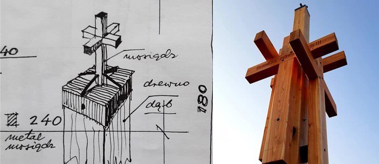 Już stoi. Nietypowy, wyższy od pozostałych krzyży, tworzy rzeźbę. Wkrótce poświęcenie