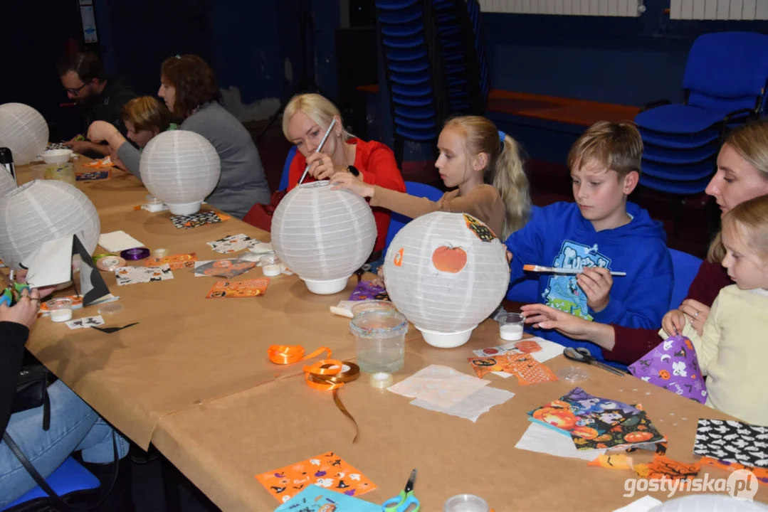 Autorką piątkowych warsztatów lampionowych była Marta Hojak, animatorka kultury w gostyńskim ośrodku kultury. Uczestnicy mogli przyjść w halloweenowym przebraniu. Tuż po przekroczeniu progu Hutnika, wkroczyli do tajemniczego świata. W holu, przy zapalonych świeczkach, na podłodze można było dostrzec pająki. Podążając za nimi, dzieci wraz z rodzicami trafili do sali, w której czekały warsztatowe stanowiska. Papierowe klosze, serwetki, nożyczki i klej.