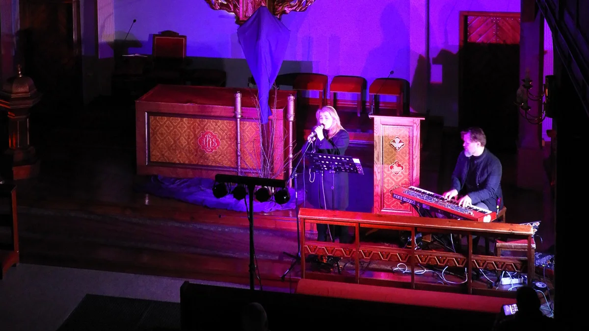 Niezwykle charyzmatyczna wokalistka podkreśla piękno kościoła pw. Niepokalanego Serca Maryi w Piaskach.