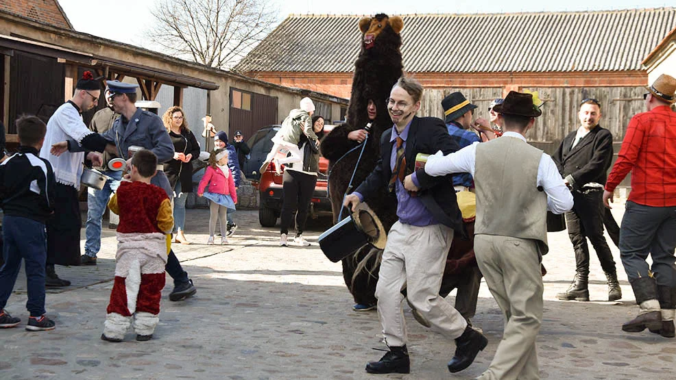 - Zaczynamy wizytę w każdym domu słowami: "Serdecznie witamy państwa gospodarzy. Niechaj w gospodarstwie dobrze wam się darzy". Chodzi o to, by powiodło się rolnikom, którzy właśnie rozpczęli nowy sezon w polu, po zimie, by plony były jak najlpsze. Koniecznie trzeba umazać całą rodzinę sadzą - powiedział ... przebrany za policjanta. - Biorę udział w kultywowaniu tradycji od 12 roku życia. Mam obecnie 27 lat. Ale pamiętam niedźwiedzia, którego przebranie zrobione było z pęków słomy. To był bardzo ciężki strój, około 40 kilogramów ważył. Ten obecny jest trochę lżejszy - opowiadał Mikołaj Wendzonka z Zalesia.