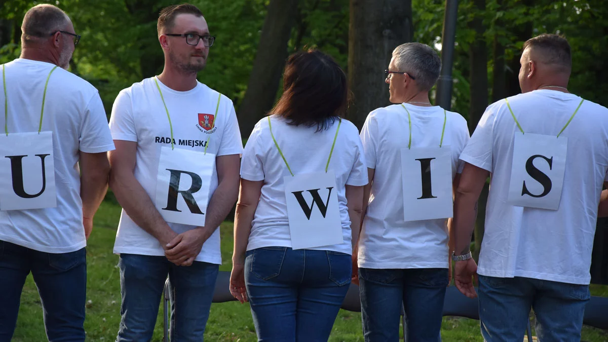 Kiedy najmłodsi zabawiali się z animatorką, młodzież i dorośli zostali "wywołani do tablicy". Pięcioosobowe drużyny - jako reprezentacje gminnych radnych oraz młodzieży z ZSOiZ w Pogorzeli, zmierzyły się w turnieju pt. "Kocham cię Pogorzelo". Zanim zajęli miejsca utrzymywali, że mają tremę, ale na wystraszonych nie wyglądali. Organizatorzy uprzedzali, że pytania nie są trudne, ale podchwytliwe. Otuchy dodawali uczestnicy majówki, kibicując drużynom. Burmistrz Pogorzeli Daria Wyzuj stwierdziła dyplomatycznie, że trzyma kciuki za radnych i uczniów.