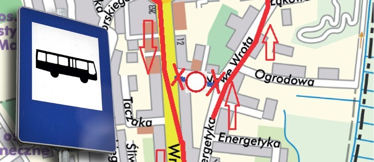 Zmiany w komunikacji miejskiej objazd: od ul. Sikorskiego wzdłuż ul. Wrocławskiej do ul. Energetyka i ul. Nowe Wrota do ul. Olejniczaka w kierunku ul. Jana Pawła II.