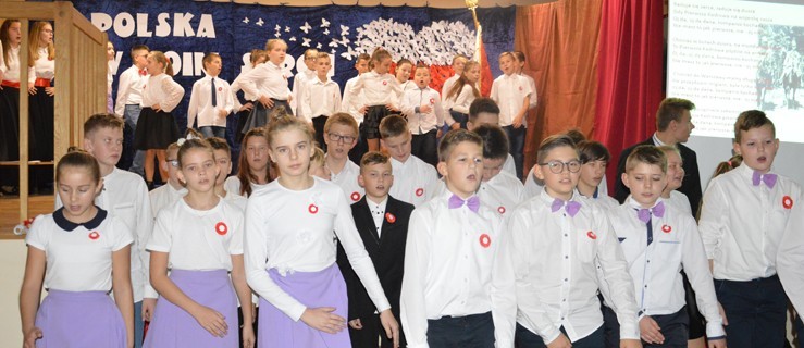 Uczestnicy wieczornicy mieli okazję wysłuchać piosenek - ułańskich, żołnierskich i patriotycznych z czasów współczesnych, a także wierszy zarówno Cypriana Kamila Norwida, jak i Karola Wojtyły. Obejrzeli taniec orła i trzech kruków, który miał uświadomić, jak Polska znikała z mapy Europy, a także taniec z flagami - symbolizujący już całkowicie wolny kraj z XX w. - Kochać kraj rodzinny to wstać rano, modlić się, płakać i śmiać, a kiedy przyjdzie czas próby i rachunku, nie żałować krwi, potu i serca - mówili uczniowie.