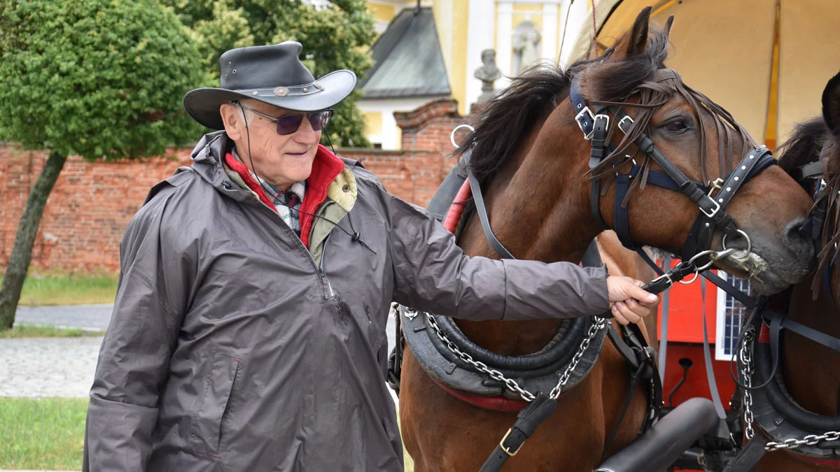 Spotkaliśmy go w sobotę, 12 lipca 2025 roku, kiedy wjeżdżał do Gostynia od strony Drzęczewa. Zmierzał do Bogusławek, by zatrzymać się na noc u Piotra Gruchota. Zanim jednak u producenta powozów konnych rozgościł się na dobre, chciał zobaczyć bazylikę na Świętej Górze.