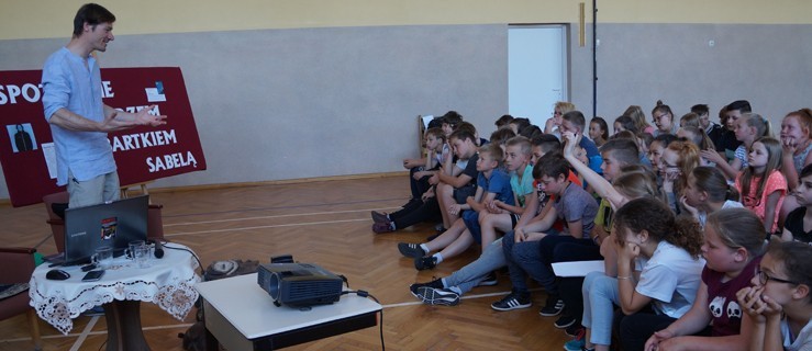 Sabela demonstrował afrykańskie maski przywiezione z podróży i odpowiadał na liczne pytania uczniów, dotyczące zarówno Afryki, jak i kwestii osobistych. Spotkanie w Gostyniu, zatytułowane było „Może (morze) wróci”. Podobnie, jak nagrodzona Bursztynowym Motylem oraz Nagrodą Magellana książka dotyczyło Uzbekistanu i Morza Aralskiego, ginącego na skutek decyzji Nikity Chruszczowa o masowej uprawie bawełny. Bartek Sabela, który dwa tygodnie temu powrócił z kolejnej wyprawy w tamte strony, przez dwie godziny pokazywał zdjęcia nie tylko pięknych zabytków Samarkandy, Buchary, Chiwy i innych miejsc z tzw. Jedwabnego Szlaku, ale głównie skupiał się na katastrofie ekologicznej, spowodowanej irygacją rzek Amu-Darii i Syr-Darii.