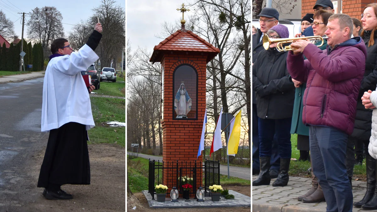 - Jeden z miejscowych murarzy Artur Pieniężny zgodził się wymurować postument z kapliczką za darmo. Kupiliśmy cegłę, wykopano fundamenty, zalano je betonem z uzbrojeniem. To było konieczne, ponieważ figura stoi przy skrzyżowaniu dwóch dość ruchliwych dróg - wyjaśnia Teresa Szymczak.