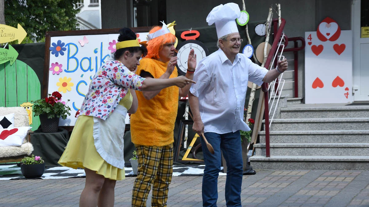 - W tym roku, kiedy już mogliśmy się otworzyć dla gości z zewnątrz, terapeutki wymyśliły, że festyn będzie przygodą z bajką. Te utwory niosą sporo mądrych i wartościowych treści. A w obecnym czasie zawirowań politycznych, a także wojny za wschodnią granicą powrót do dzieciństwa i bajek jest bardzo dobrą formą spędzania popołudnia i formą terapii. Artyści zostali świetnie przygotowani pod okiem terapeutów, dla których praca z osobami chorymi, niepełnosprawnymi to misja - powiedziała Renata Wojda, dyrektorka DPS Rogowo, przebrana za królową z Alicji w Krainie Czarów.