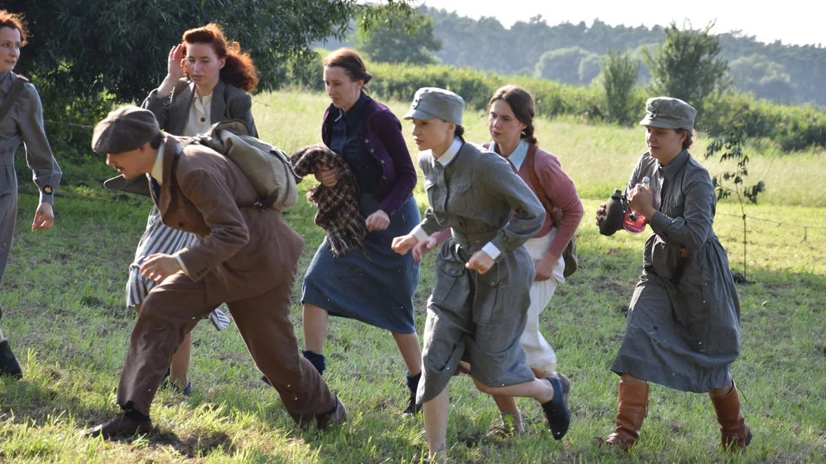 Z jednej strony uciekający cywile, z drugiej sylwetki sowieckich żołnierzy, wyłaniające się na linii horyzontu, zza wzgórza („razwiedka” czyli służby wywiadowcze), pierwszy kontakt ogniowy - radzieckie wojsko dysponuje artylerią.