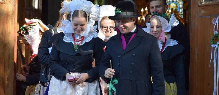– Jest też ostatni taniec, tak zwane „służenie przed czepcem”, po którym młoda panna ucieka do komory i tam gospodyni przebiera ją w czepiec mężatki. I potem ona wychodzi i zadaniem panna młodego jest rozpoznać, czy zasłonięta chustą wychodzi jego wybranka czy też nie – dodaje pan młody.