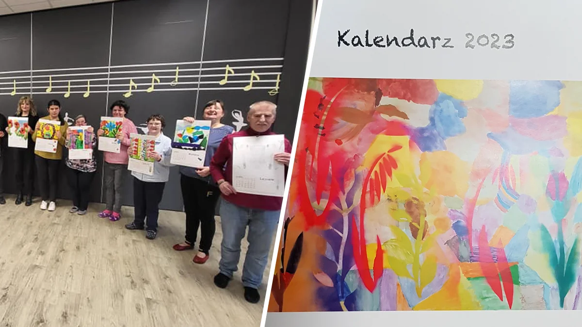 Kilka dni temu na fanpage’u ŚDS w Gostyniu poinformowano, że uczestnicy otrzymali z drukarni kalendarz ścienny na 2023 rok. To niezwykłe dzieło, w którym zaprezentowano prace plastyczne 12 osób. Każda ze stron przedstawia dany miesiąc z pracą plastyczną jednego z uczestników projektu.
