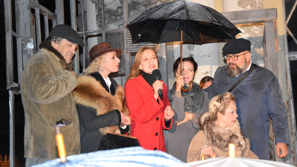 Spektakl miał charakter plenerowy, a kamienica, położona na rogu gostyńskiego deptaku i rynku i przestrzeń przed nią okazały się doskonałą scenografią i tłem do pokazu gry aktorskiej ekipy z Teatru im. Heleny Modrzejewskiej w Legnicy. Kilkukrotnie mieliśmy już okazję gościć ten teatr w Gostyniu i za każdym razem zachwycał widownię. Ze względów technicznych widownia została ograniczona do 100 miejsc. Siedzący pod parasolami widzowie nie rozczarowali się po wcześniejszych zapowiedziach. Imponująca realizacja, kilkunastoosobowa obsada, a także tańce, piosenki oraz muzyka na żywo i dodatkowo specyficzny humor reżysera Tomasza Raczaka - to wszystko dostali. Dodatkowym „smaczkiem” była obecność w obsadzie pochodzącej z Gostynia aktorki Ewy Galusińskiej.