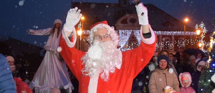 Gwarno dziś po południu na gostyńskim rynku. A przed godziną zapanował tam iście świąteczny klimat. Tuż po godzinie 16.00, przy ogromnej 10-metrowej choince pojawił się Święty Mikołaj z wysokimi Śnieżynkami i wraz z dziećmi sprawił, że choinka rozbłysła wszelkimi ozdobami i światełkami. Natura też pomogła – chwilę wcześniej sypnął śnieg.