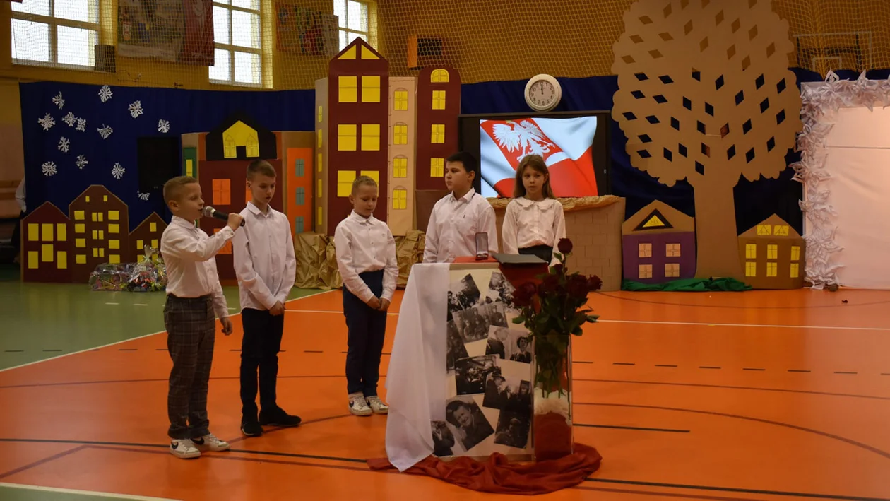 Z tej okazji dyrektor szkoły Zbigniew Jakubowski przybliżył koleje losu szkoły i jej patrona, a uczniowie i nauczyciele przygotowali patriotyczną akademię przybliżającą kwestie zwycięskiego Powstania Wielkopolskiego. Było bardzo uroczyście i poważnie, ale też wzruszająco i świątecznie. Przyznanie tak ważnej odznaki podczas święta patrona szkoły skłoniło do zadumy nad historią, tradycją i upływającym czasem oraz do zastanowienia nad życiowymi wartościami i drogowskazami przed bozonarodzeniową przerwą w nauce.