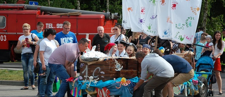 Kolorową kawalkadę konstruktorów i ich ciekawych dzieł prowadził strażacki wóz - star 25 z OSP w Jeżewie, a dalej jechały kolorowe autko Mc Queen z bajki „Auta”, kra z górą lodową, na której dzieci jako „pingwinki z Madagaskaru”,chętnie spędzają czas wolny. Pojawiły się czołg, łajba z piratami oraz rakieta. Wszystkie te nietuzinkowe pojazdy napędzane były siłą mięśni i wiozły na swoich pokładach konstruktorów oraz dopingujących ich kibiców. Ci ostatni dawali z siebie mnóstwo energii, aby jak najgłośniej dopingować załogę pojazdu.