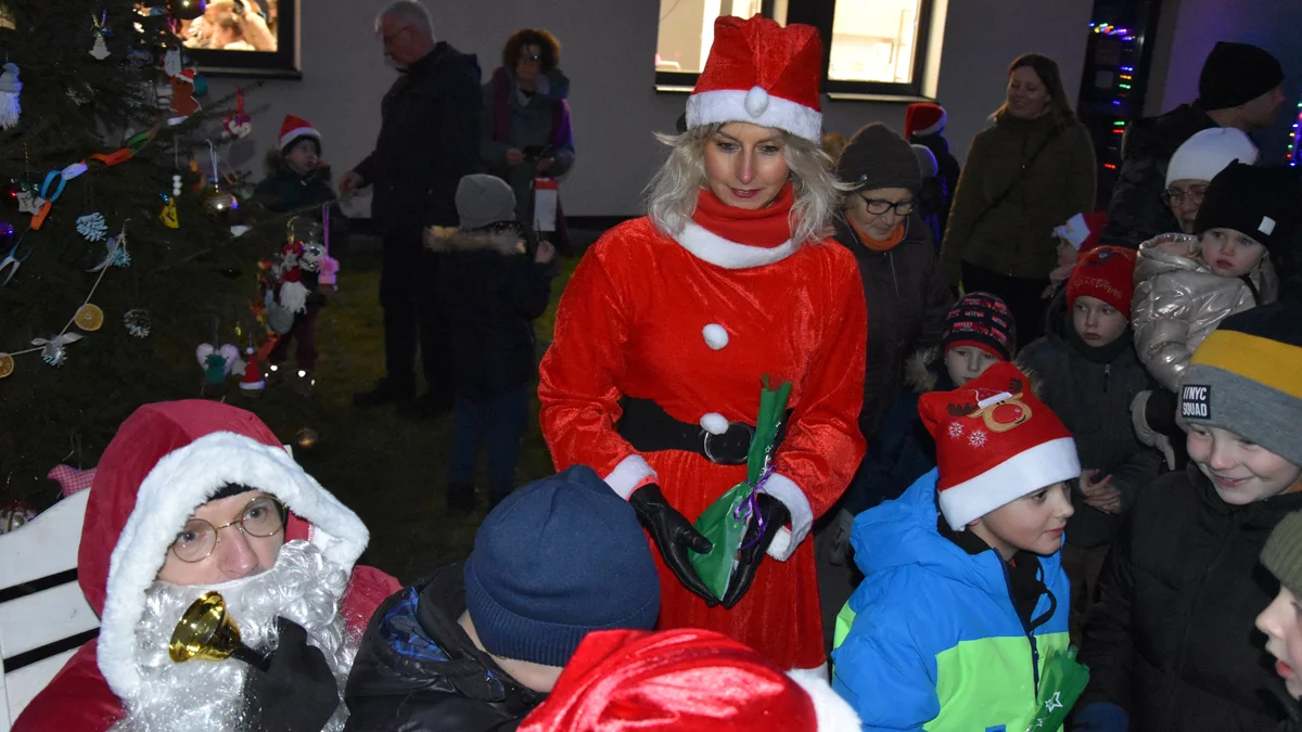 Czubek choinkowego drzewka ozdobił Karol Stefaniak, przewodniczący rady osiedla. Kolorowych ozdób przybywało, a kiedy choinka już była przystrojona, pojawił się Święty Mikołaj z ogromnym kartonem, pełnym prezentów. Przyjechał powozem konnym razem z Panią Mikołajową.