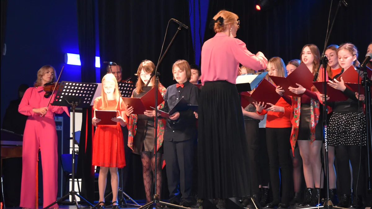 W drugiej części, na którą chyba najbardziej czekali przede wszystkim rodzice, można było usłyszeć efekty pracy dyrektorki i pracowników Państwowej Szkoły Muzycznej I st. w Gostyniu -zaprezentowały się utalentowane dzieci oraz młodzież z Gostynia. Tę część koncertu rozpoczął swoim występem chór szkolny gostyńskiej szkoły muzycznej pod dyrekcją Agnieszki Durkiewicz.