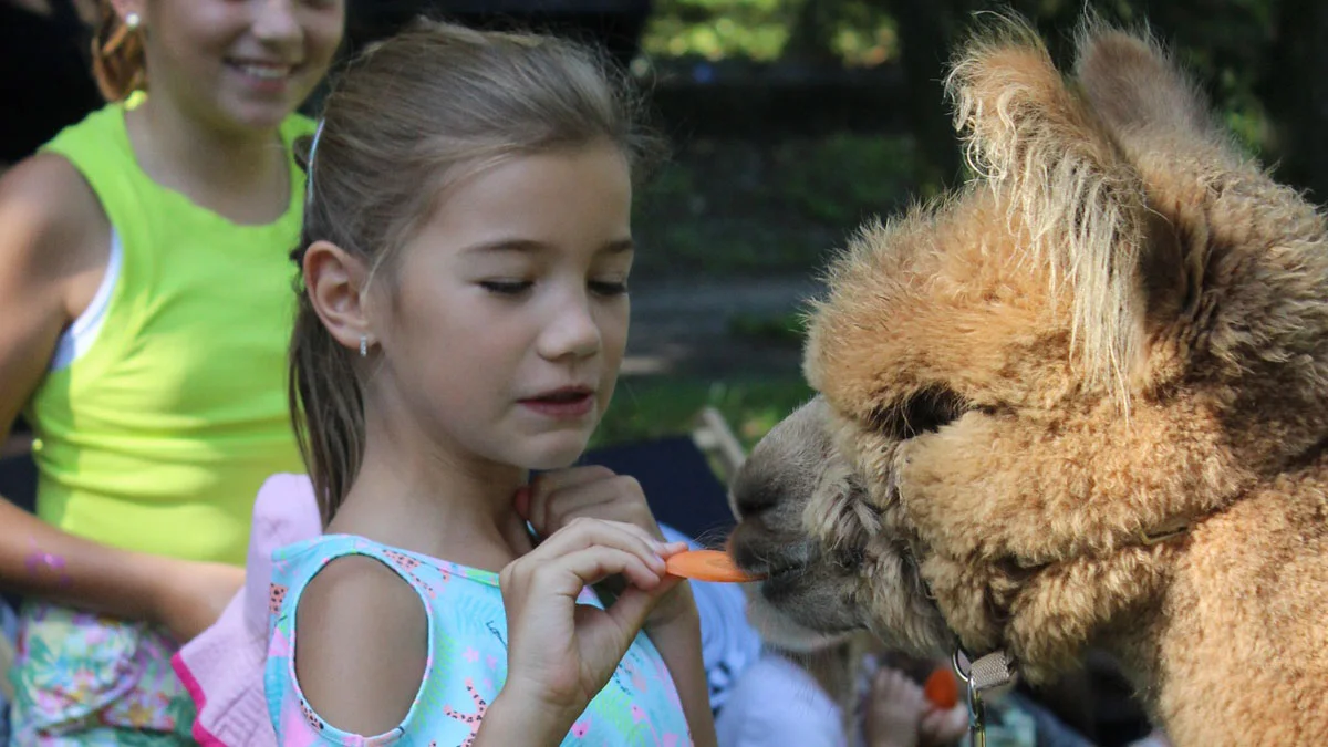 Właścicielka alpak opowiadała uczestnikom o zachowaniu tych zwierząt i ich charakterze. Dzieci dowiedziały się na przykład, że zwierzeta plują. Używają tej umiejętności bardzo rzadko, tylko w chwili dużego zagrożenia, więc człowiek może czuć się przy nich raczej bezpieczny. Był też wykład na temat futra alpak - bardzo miękkiego i suchego. Opiekunka zwierząt mówiła, jak długo i jak bardzo trzeba pracować, by powstała z niego jedwabista wełna, wykorzystywana do produkcji różnego rodzaju materiałów np. do szycia pościeli, nieraz kołder. Wspomniała również o dużej odpowiedzialności w hodowli i opiece nad takim zwierzęciem.