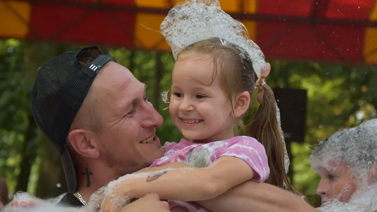 Nadszedł wreszcie moment, kiedy na placu, na którym doskonale bawili się najmłodsi, pojawił się metalowy stelaż (kratownica) z urządzeniem. Na uczestników imprezy spadł deszcz pachnącej piany. Szalejące dzieci do woli korzystały kąpieli. W ten sposób zainaugurowano wydarzenie z serem w roli głównej, które w Pogorzeli już w sobotę.