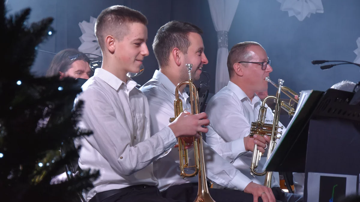 „Najmłodszy nabytek” orkiestry Big Band Pępowo Janek Krajka zadebiutował na scenie w wykonaniu pastorałki „Przekażmy sobie znak pokoju”, wykonując ją wspólnie z Ireneuszem Chmielarczykiem. Publiczność usłyszała Janka również solo.