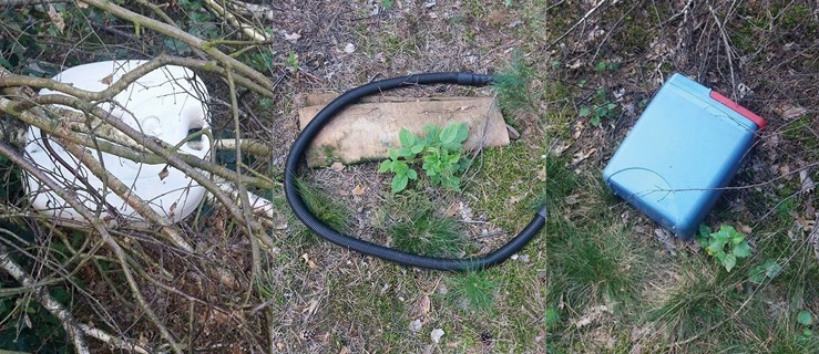 Na zdjęciu prezentujemy porozrzucane w tym samym lesie rzeczy użytku domowego, przysłane przez jedną z naszych Czytelniczek. Znalazła je podczas spaceru. Fotografie przekazaliśmy Straży Miejskiej w Gostyniu.