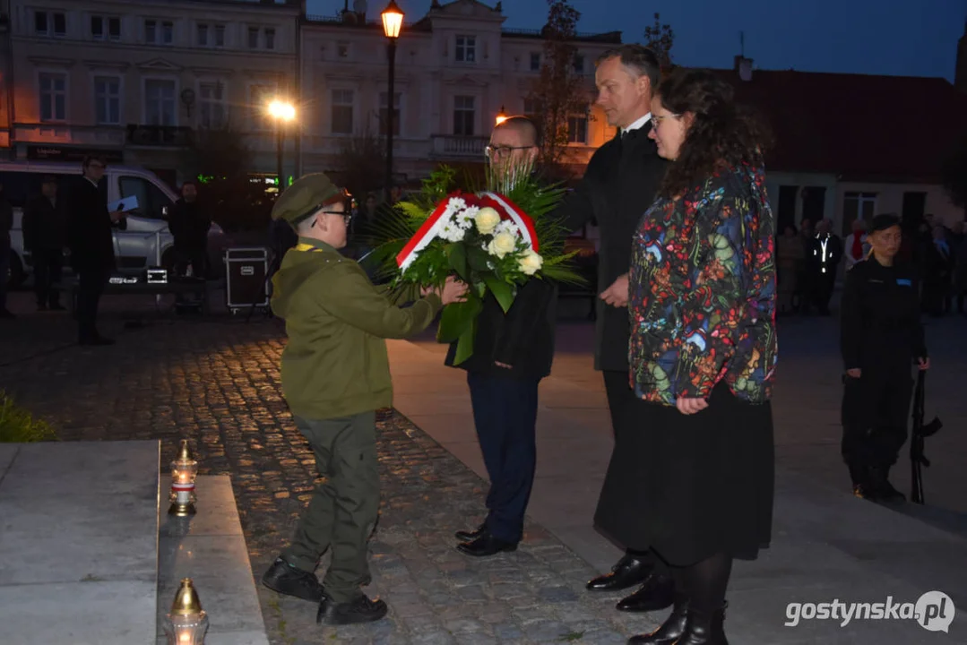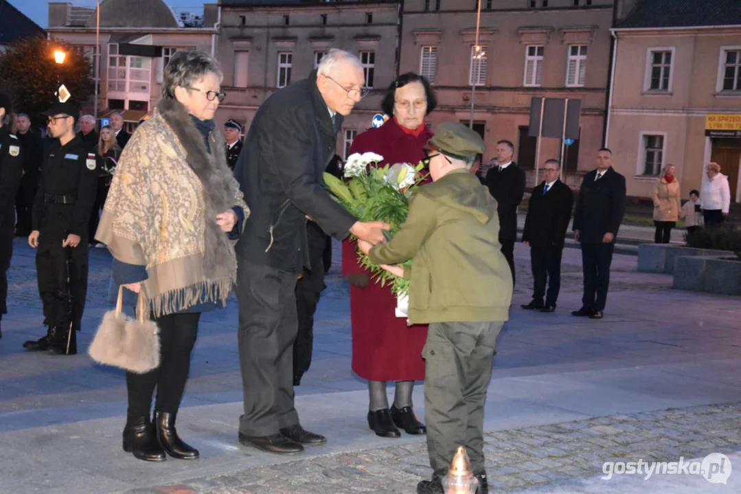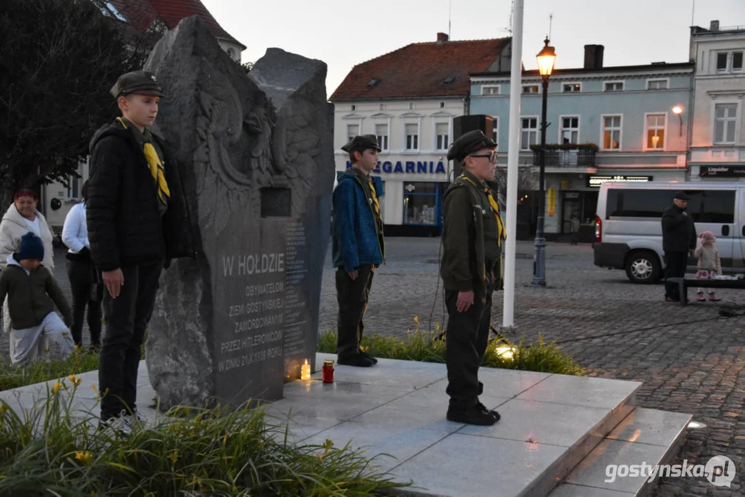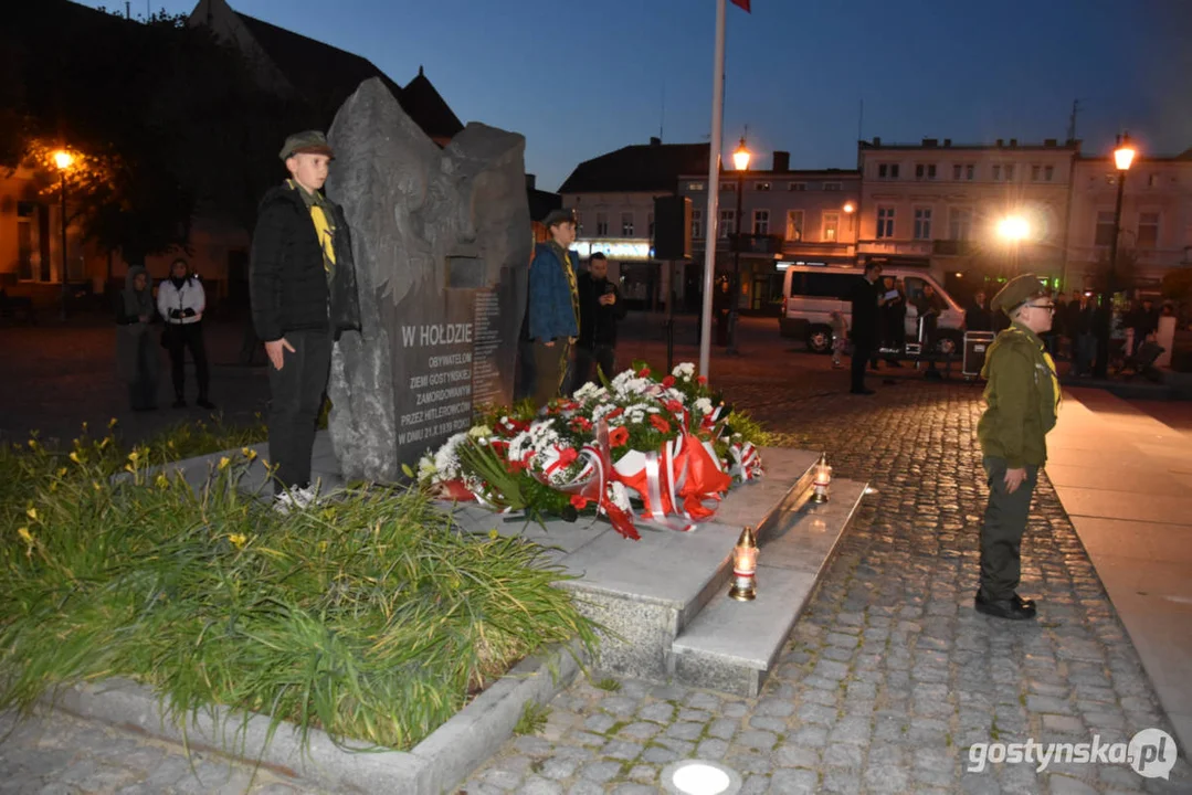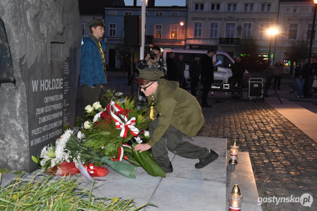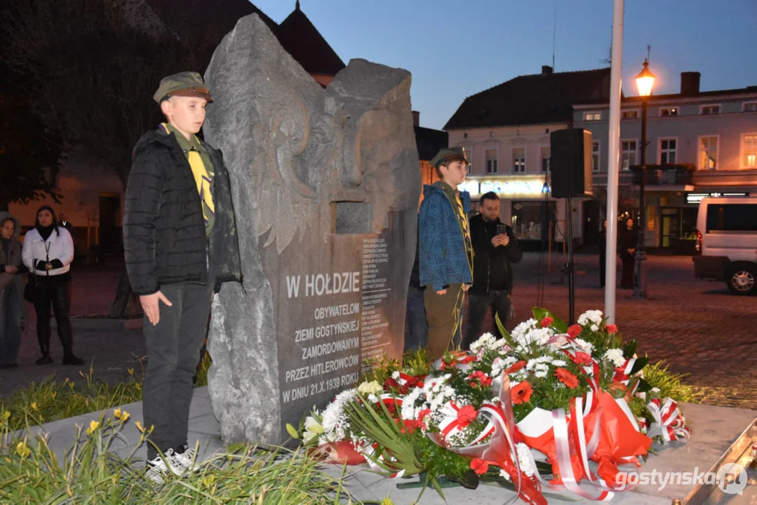 Następnie biorący udział w uroczystości, prowadzeni przez Miejsko-Gminną Orkiestrę Dętą przeszli na rynek. Tam, przed pomnikiem poświęconym obywatelom ziemi gostyńskiej, oddano hołd tym, którzy w 1939 roku zostali zamordowani przez niemieckich okupantów na oczach rodzin i dzieci, co - jak podkreślano w dzisiejszych przemowach - stanowiło jawny przejaw terroru.