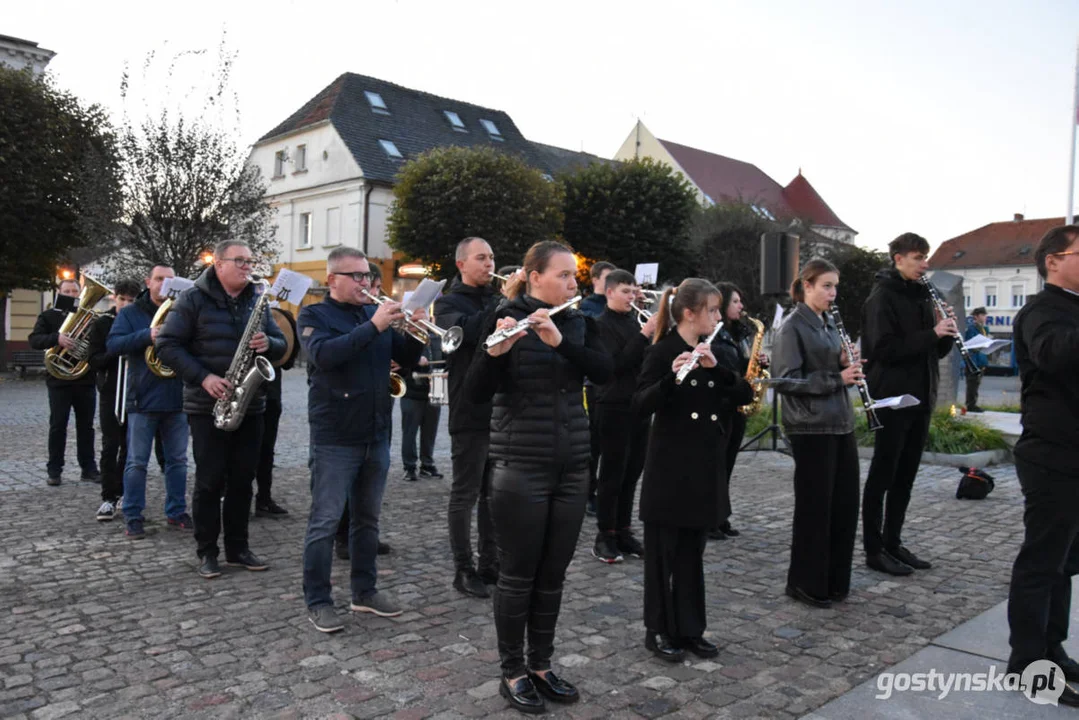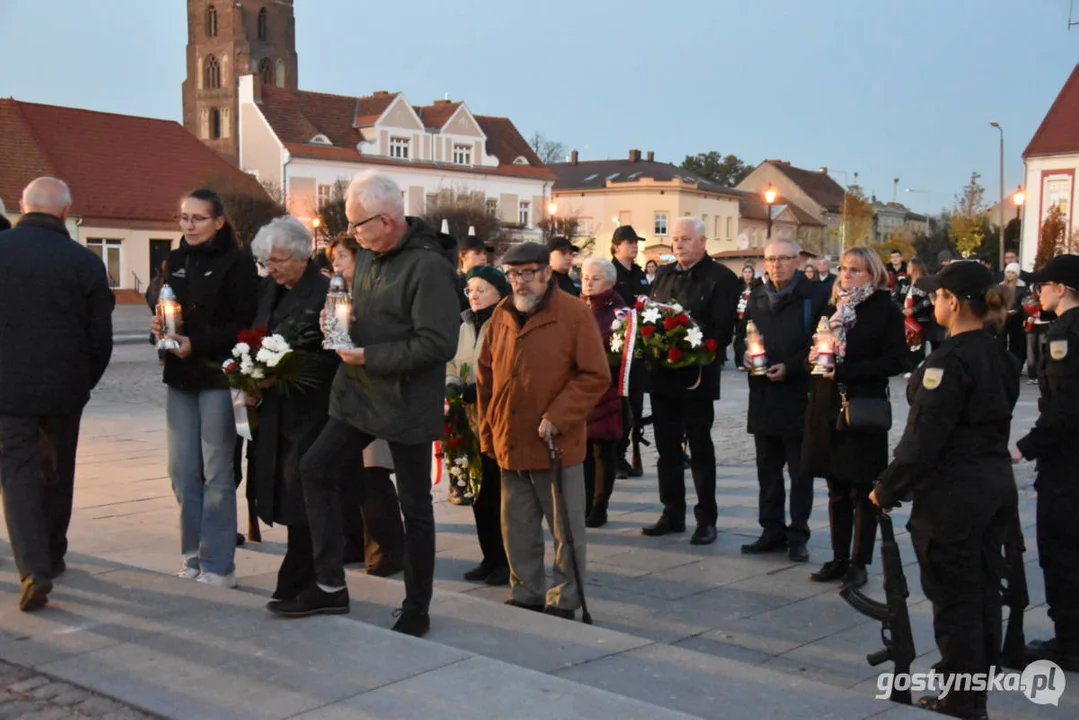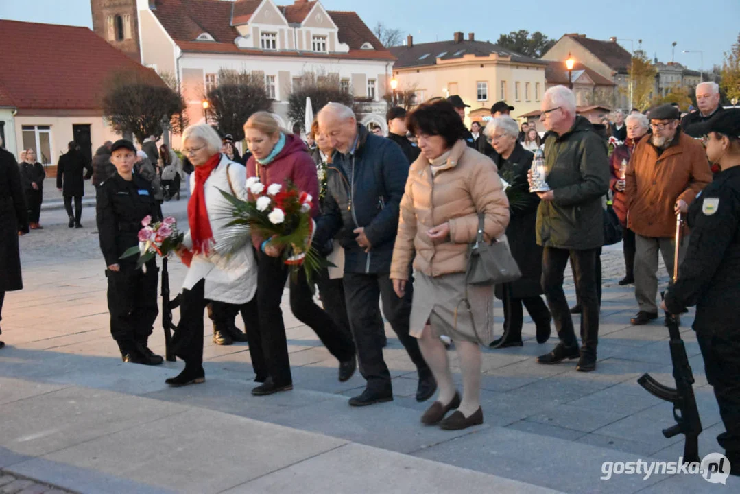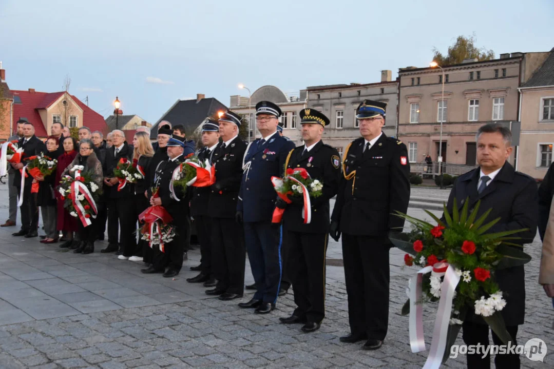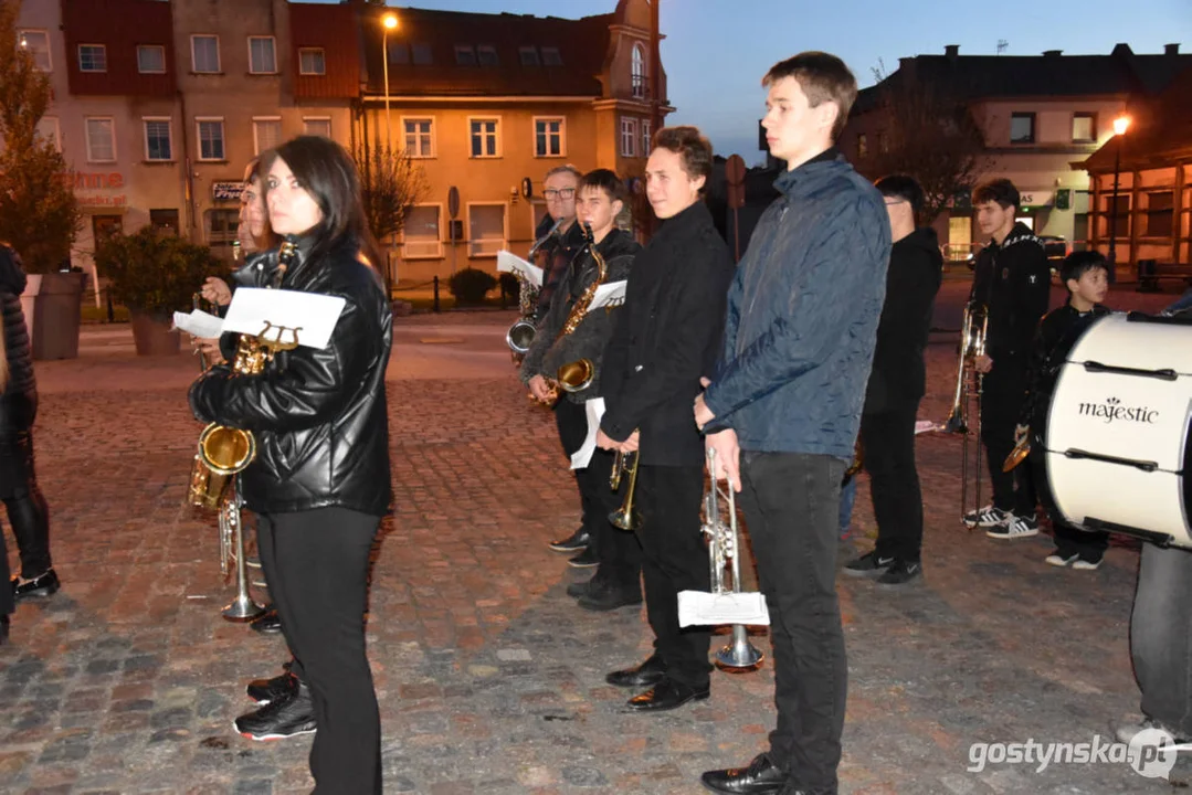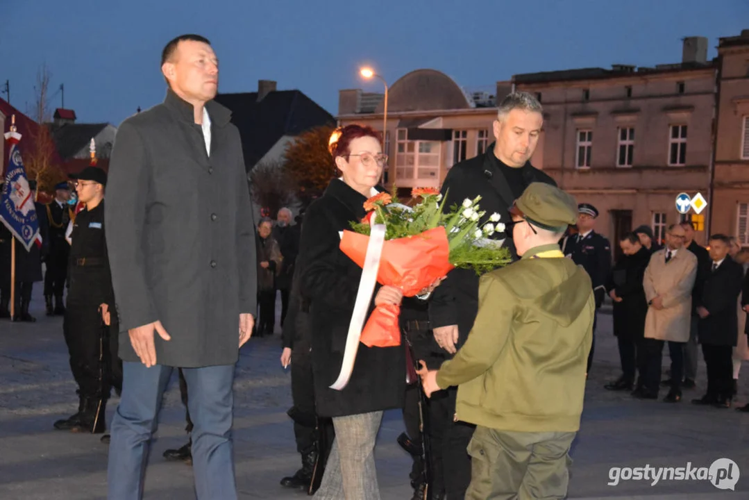 Następnie biorący udział w uroczystości, prowadzeni przez Miejsko-Gminną Orkiestrę Dętą przeszli na rynek. Tam, przed pomnikiem poświęconym obywatelom ziemi gostyńskiej, oddano hołd tym, którzy w 1939 roku zostali zamordowani przez niemieckich okupantów na oczach rodzin i dzieci, co - jak podkreślano w dzisiejszych przemowach - stanowiło jawny przejaw terroru.