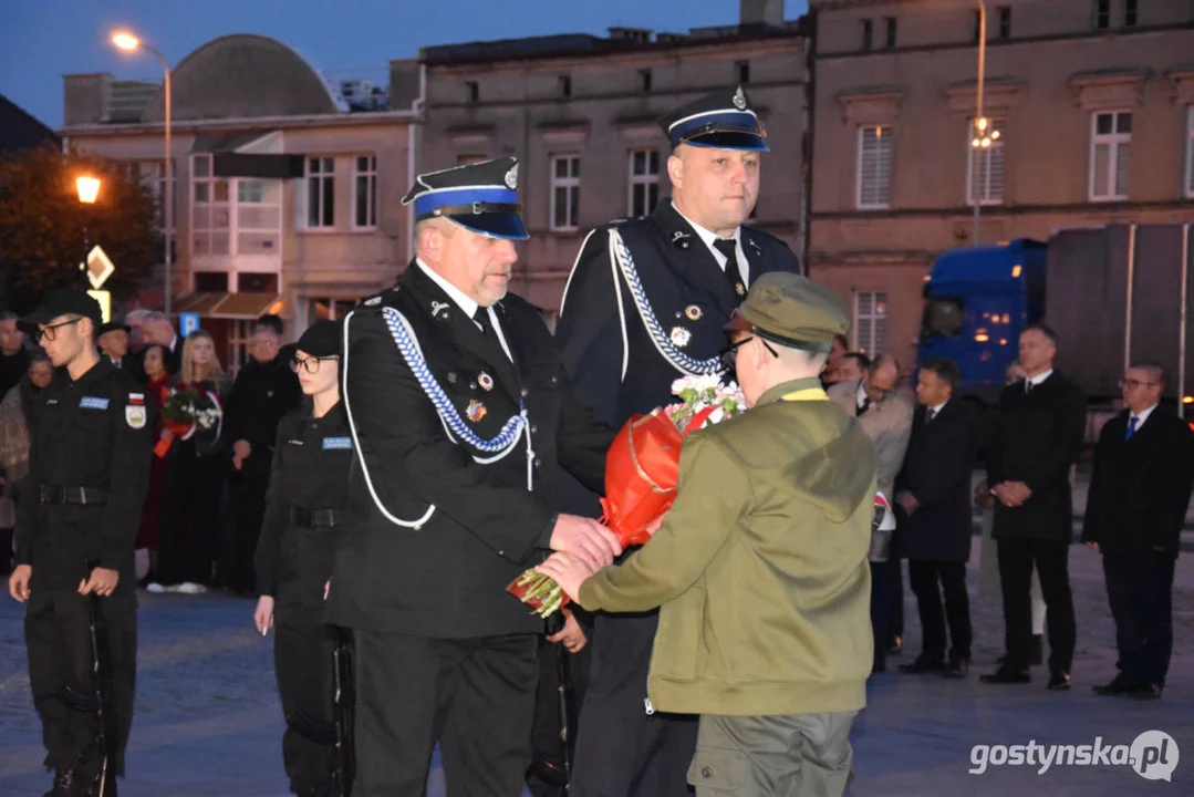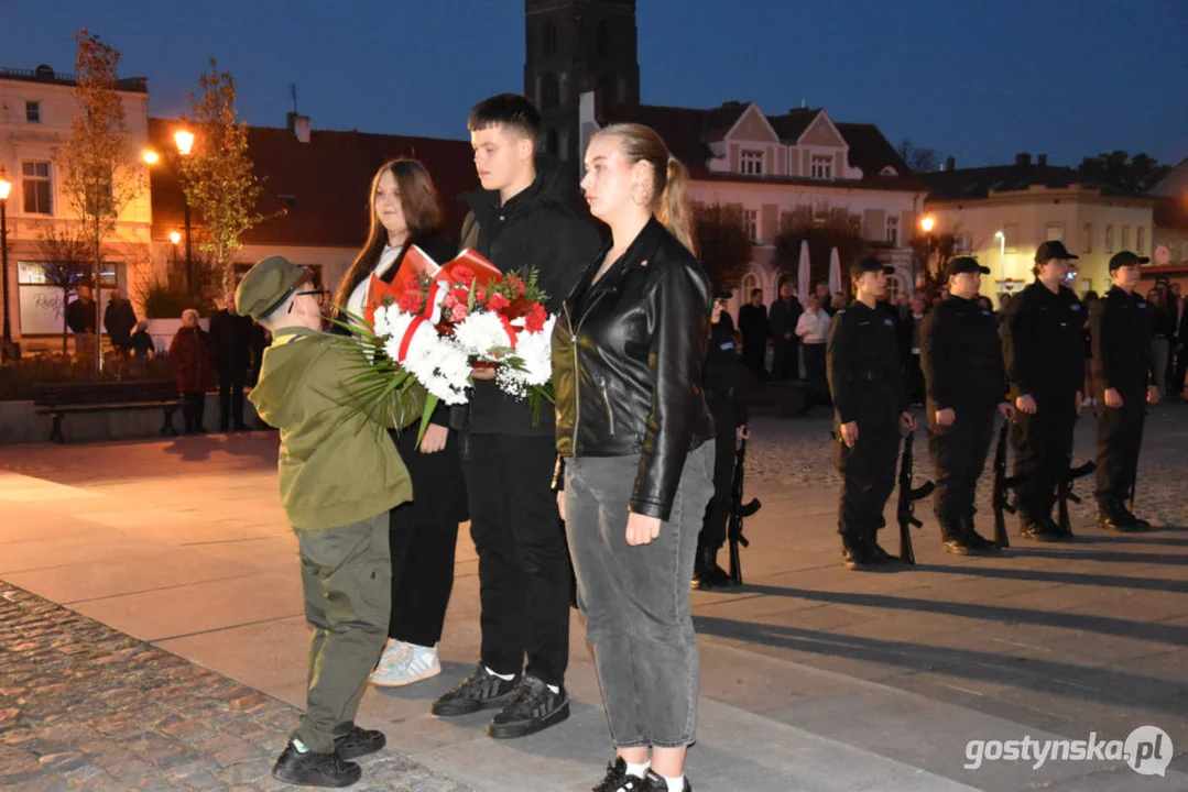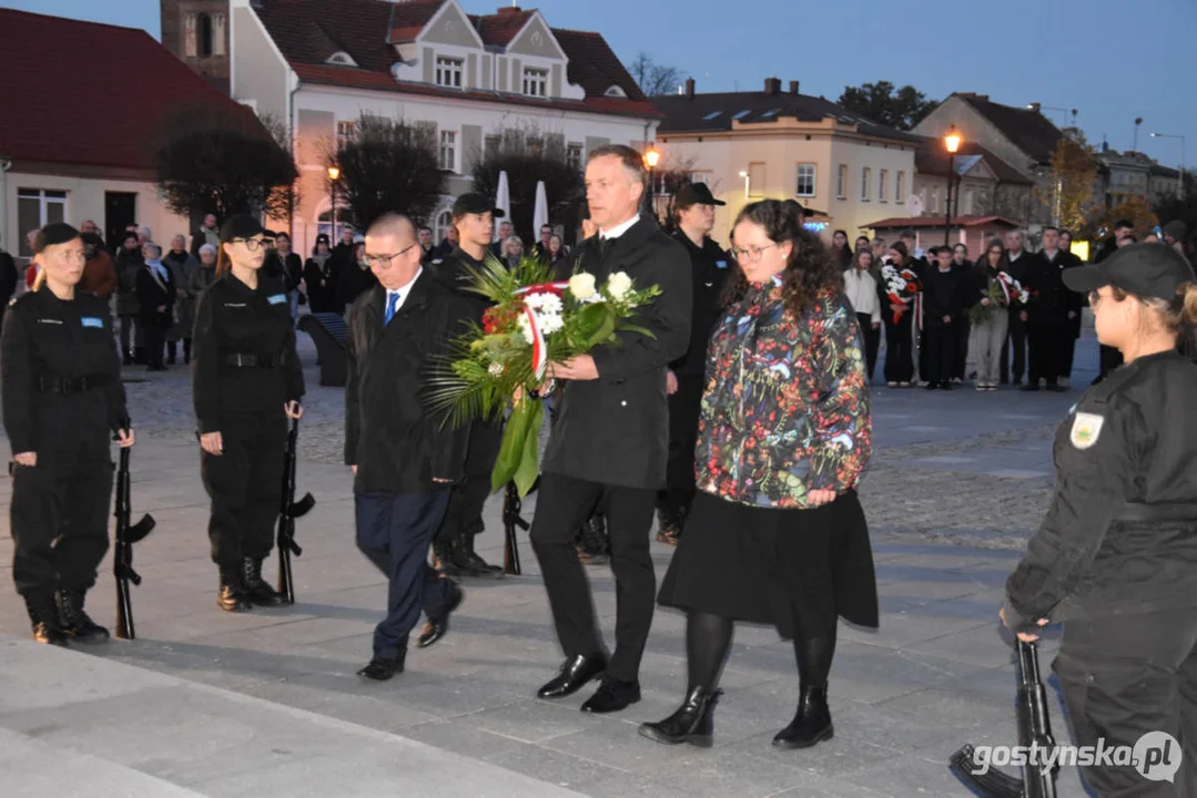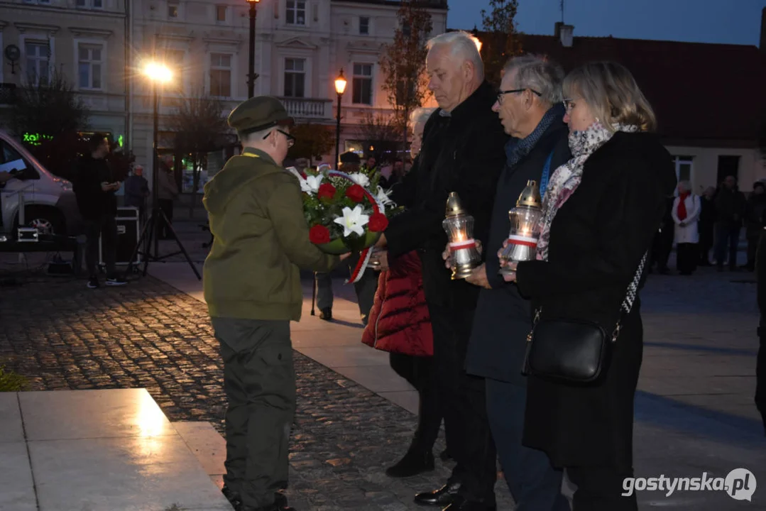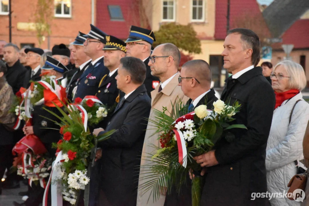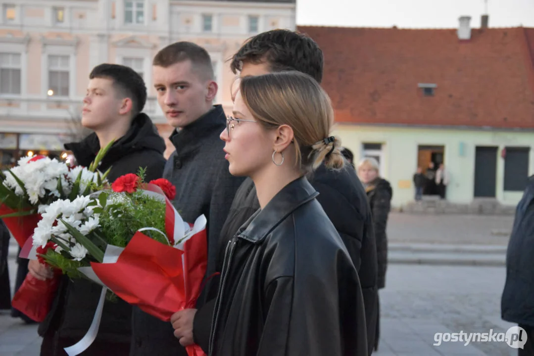 Następnie biorący udział w uroczystości, prowadzeni przez Miejsko-Gminną Orkiestrę Dętą przeszli na rynek. Tam, przed pomnikiem poświęconym obywatelom ziemi gostyńskiej, oddano hołd tym, którzy w 1939 roku zostali zamordowani przez niemieckich okupantów na oczach rodzin i dzieci, co - jak podkreślano w dzisiejszych przemowach - stanowiło jawny przejaw terroru.