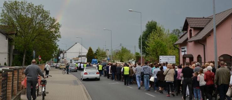 Przed wyruszeniem w trasę, kapłan namawiał do przygotowania własnych intencji, aby przekraczając próg bazyliki, jeszcze głębiej skorzystać z łask Jubileuszowego Roku Miłosierdzia. Zebranych nieco przestraszyły błyski i gromy z oddali, po chwili jednak na niebie pojawiła się tęcza, która towarzyszyła pielgrzymom przez resztę drogi. Nad bezpieczeństwem czuwali policjanci oraz strażacy.