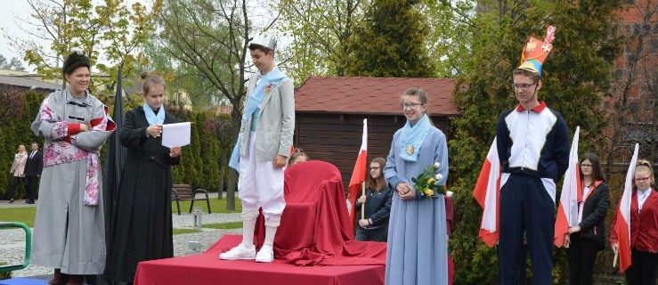 W ten sposób świętowano w Pępowie 3 Maja. Uroczystości rozpoczęła msza św. w kościele parafialnym, następnie uczestnicy przeszli pod pomnik pamięci, gdzie złożono wiązanki kwiatów. Już przy fontannach licznie zgromadzonych mieszkańców przywitała młodzież z kółka teatralnego i chóru działających przy Zespole Szkół w Pępowie.