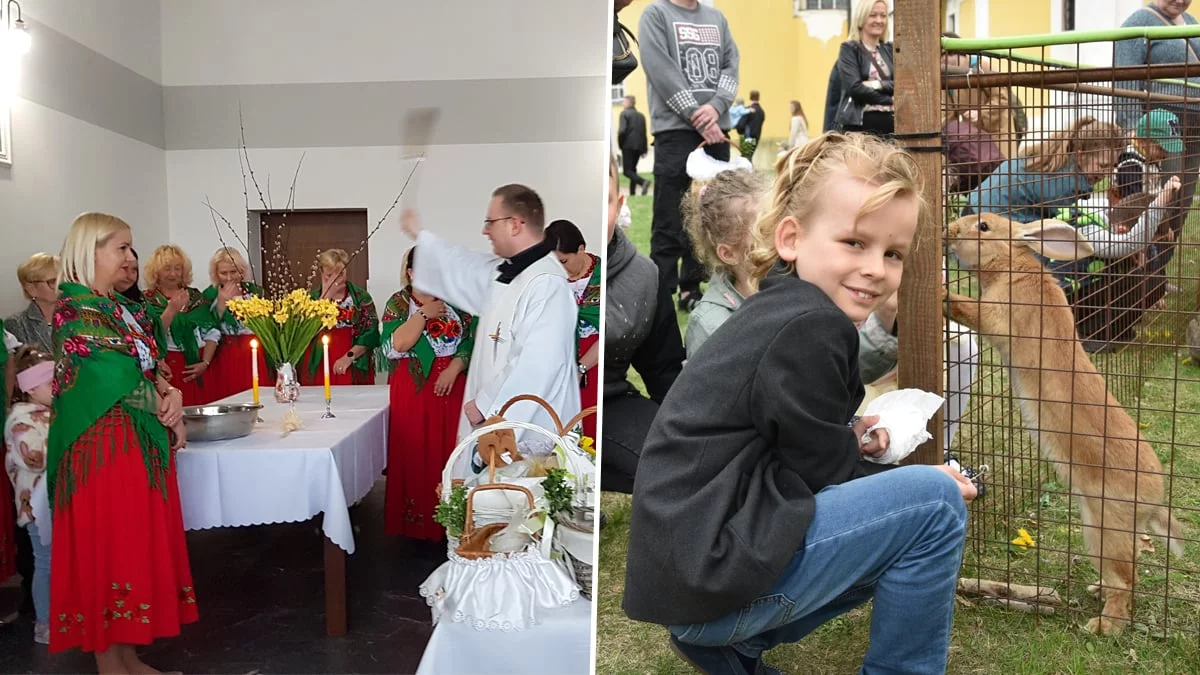 Po poświęceniu potraw dzieci z rodzicami wyszły przed bazylikę, gdzie przygotowano kilka atrakcji. Na zielonym skwerze czekał zając, dalej maluchy mogły zobaczyć, a nawet pobawić się z żywym królikiem oraz niewielkie czarne baranki. Pojawiła się też kolejna maskotka - żółty kurczak.Dużo działo się też w klasztornym ogrodzie - tam ukryto... prezenty „na zająca”, które dzieci musiały same odnaleźć. Szybko okazało się, że w trawie siedzą zające - kartonowe. Te prezenty najmłodsi mogli zabrać ze sobą do domu, co bardzo je ucieszyło. Od razu pojawiły się pomysły, jak zostaną wykorzystane.