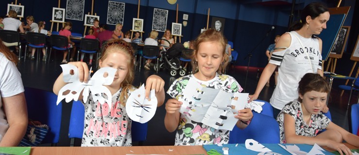 - Zachęcam was do takiego ćwiczenia - żeby teraz wyciąć sobie otworki. Grupa starsza może spróbować ostrożnie tapeciarskim nożykiem wyciąć ażury. Ten nóż będzie się lepiej ślizgał, im będzie ustawiony pod mniejszym kątem do kartki, tym łatwiej będzie nam wycinać - tłumaczył instruktor. Młodsze dzieci, które operowały nożyczkami, robiły nacięcia w obrębie narysowanego wzoru. Uczestników, którzy chcieli wyżej podnieść sobie poprzeczkę, Grzegorz Dudała zachęcał do uruchomienia wyobraźni - aby na skrzydłach swojego motyla, który powstał z szablonu, wycięły kwiatek, serduszko lub samemu zaprojektowały sobie wzór. Mali artyści - a wraz z nimi mamy lub babcie - w skupieniu obserwowały, co powstaje pod nożykiem. Grzegorz Dudała jest absolwentem archiwistyki, dokumentalistyki konserwatorskiej i historii Uniwersytetu Wrocławskiego. Mieszka w Szczekocinach i tam pracuje w Miejsko-Gminnym Ośrodku Kultury i Sportu, a także w bibliotece publicznej. W wolnych chwilach maluje akwarele. Ponadto prowadzi warsztaty z wycinanki ludowej i żydowskiej, jego prace znalazły nabywców w wielu miejscach Polski, Słowacji, a nawet Izraela.