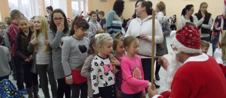 Otóż na sali pojawił się „kominek” - zbudowany z kartonów i pod kolor ubrań świętych, ale dający poczucie świątecznego ciepła. Takie przyjęcie automatycznie sprawiło, że Mikołaje sięgnęli głęboko do swoich worków wypełnionych prezentami. Dzieci gromko ruszyły na „spowiedź” przed Mikołajami, a każde z nich musiało być bardzo grzeczne, gdyż otrzymane prezenty ważyły często więcej niż same maluchy. Dlatego z pomocą w transporcie pełnych siatek przyszli rodzice.